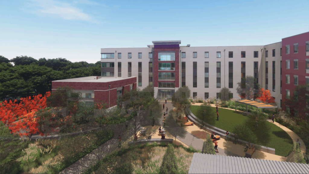 The college engaged Servitas, which specializes in student housing, as the developer in April 2019. Servitas and the college’s team finalized a design for a 413-unit apartment building with a mix of units intended for one to six students, along with shared kitchens, great rooms, and study rooms.