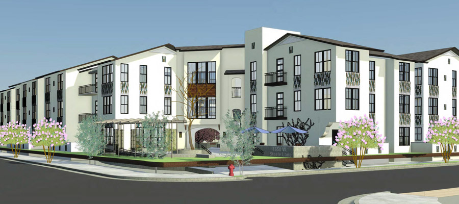 This three-story, 36-unit multifamily project will include 4 units dedicated to those earning 30-50 percent of the Area Median Income.